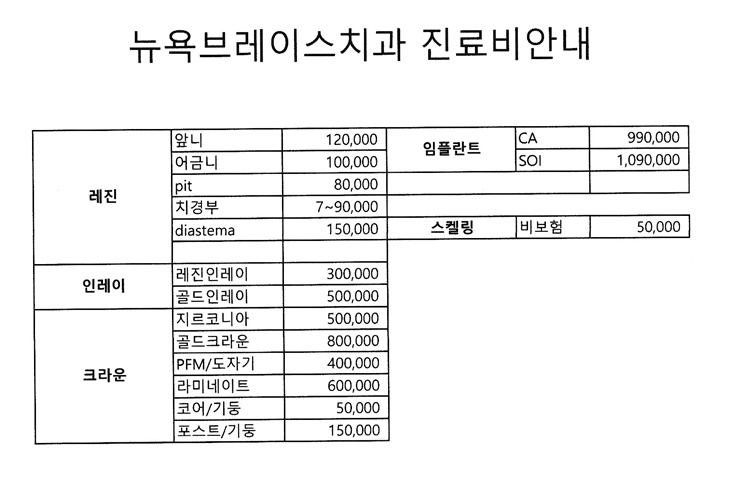 인쇄하기/글자확대.축소 기본 크게 더크게 인쇄 스크랩 목록보기 뉴욕브레이스치과 진료비안내 페이지 정보 작성자.뉴욕브레이스치과 작성일.2025-12-01 17:53:45 조회.2,345 댓글.0 본문 인쇄하기/글자확대.축소 기본 크게 더크게 인쇄 스크랩 목록보기 다음글 ▼12월진료시간안내 댓글목록 등록된 댓글이 없습니다. 다음글 목록보기